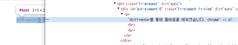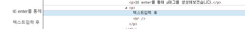 하지만 IE에서는 텍스트를 입력했어도 뒤에 <br /> 태그가 남아있었다.