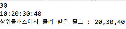 System.out.println("상위클래스에서 물려 받은 필드 : "+b+","+c+","+d);