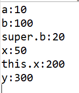 System.out.println("this.x:"+this.x); // 200, 자신클래스의 x필드