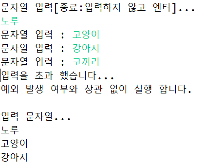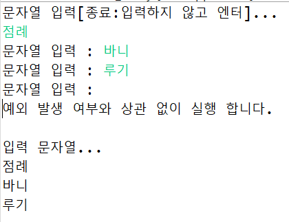 System.out.println("문자열 입력[종료:입력하지 않고 엔터]...");