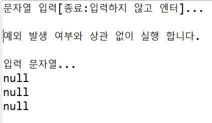 System.out.print("문자열 입력 : "); // 예외 발생하면 실행 되지 않는다.