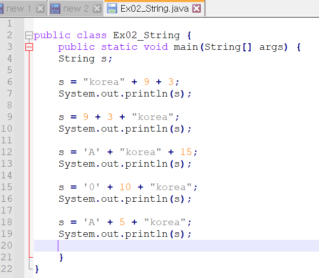 연산순서에 따라 korea+9 를 먼저 하면 korea9 + 3이 되므로 korea93