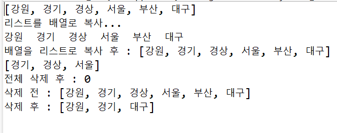 System.out.println("모두 삭제 후 개수 : " + list.size());