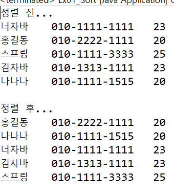 // Comparator 인터페이스 구현 : 정렬 기준 설정(나이 오름차순)