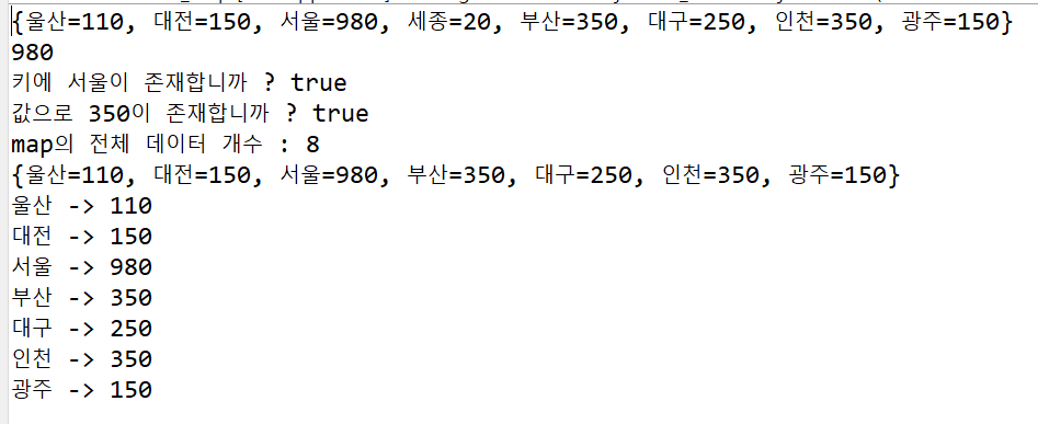System.out.println("키에 서울이 존재합니까 ? " + b);