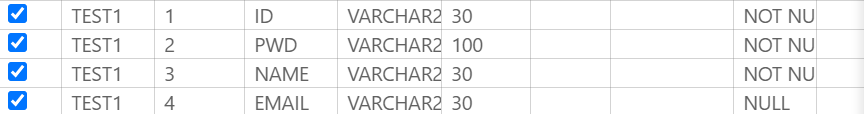 INSERT INTO test1(id, pwd, name, email) VALUES ('1','1','1','1');