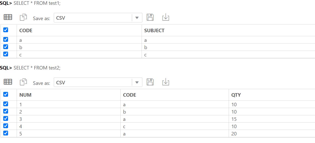 INSERT INTO test1 (code, subject) VALUES('b', 'b');