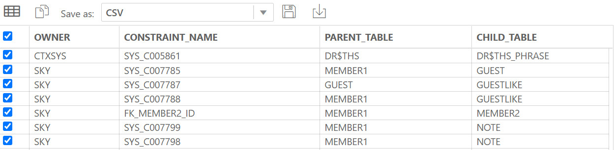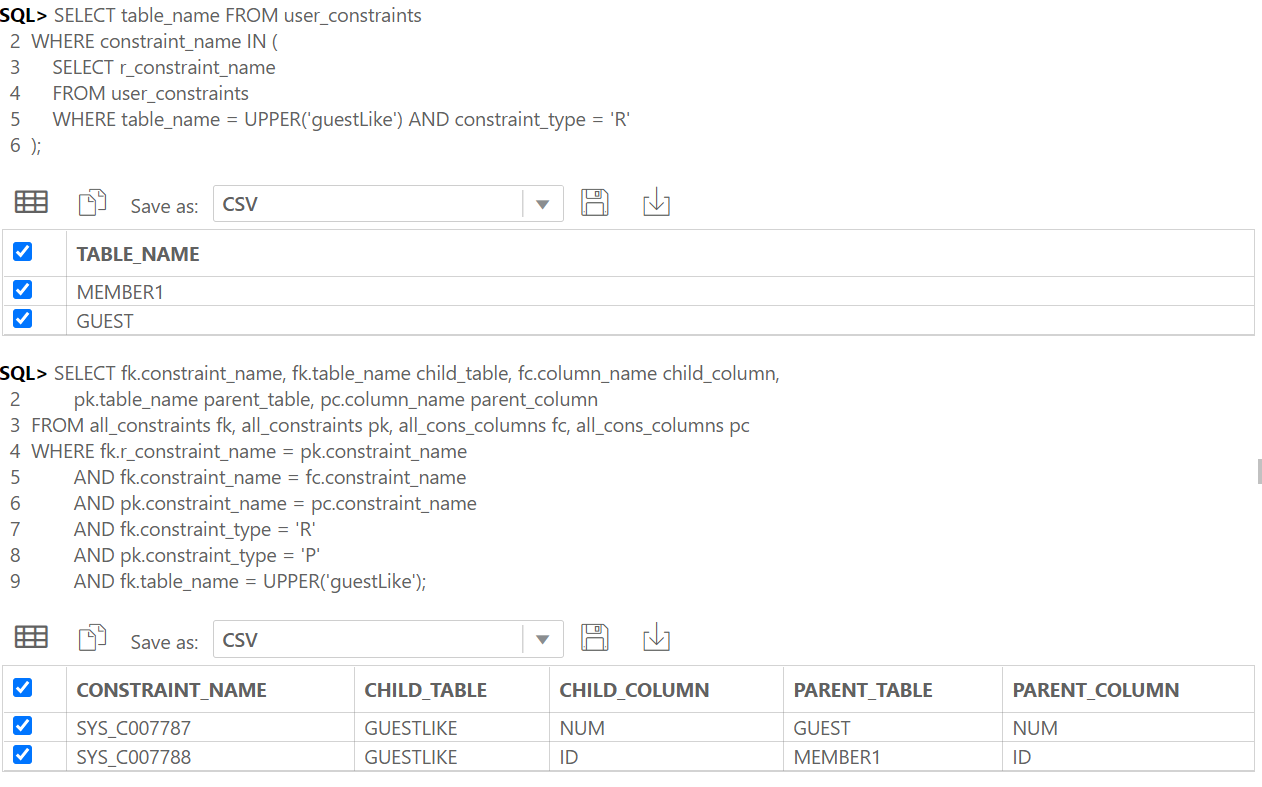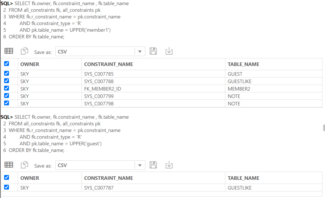 2) 『테이블명』을 참조하는 모든 테이블 목록 출력(자식 테이블 목록 출력)