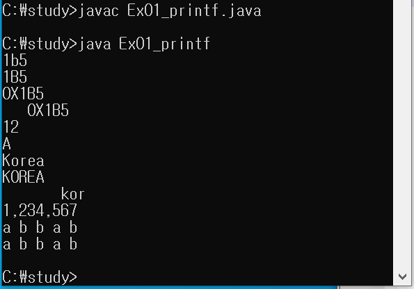 %x 와 %X 모두 437을 16진수로 표현하라는 의미. 알파벳을 소문자로, 대문자로 하냐의 차이이다.