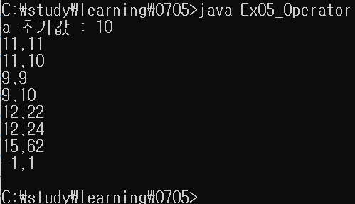 a값을 먼저 b에 넣고 그 후에 a값을 + 1 한다.