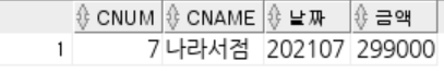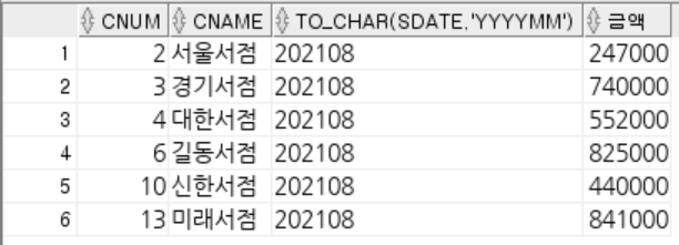 SELECT s.cNum, cName, TO_CHAR(sDate, 'YYYYMM'), SUM(bPrice * qty) 금액