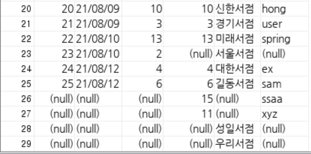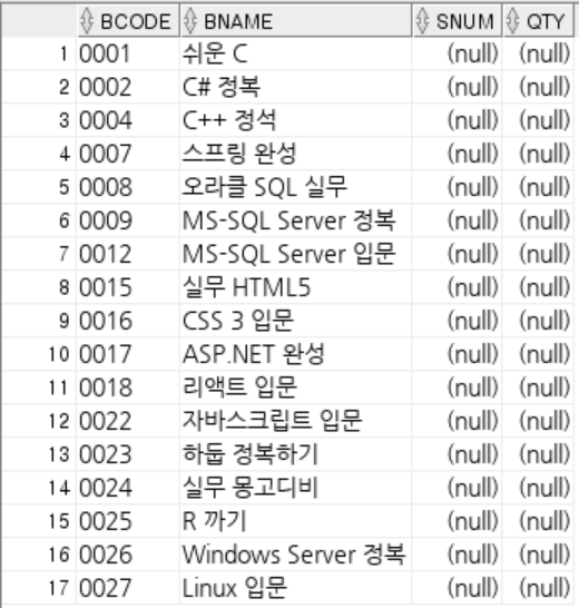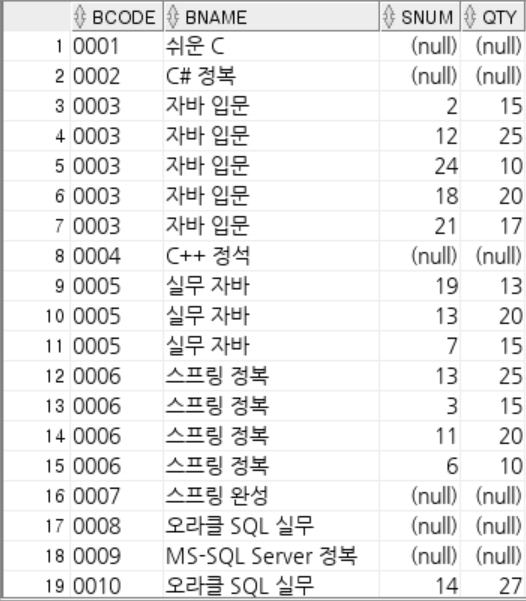 위에 서 LEFT OUTER JOIN으로 판매된 책과 판매되지 않은 책을 출력했었다.