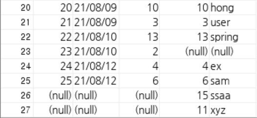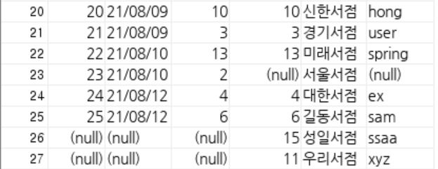 그럼 왼쪽이 다 나오고 오른쪽에 해당하는 테이블은 왼쪽과 교집합인 부분만 나온다.