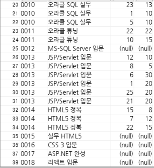 이 쿼리의 결과는 dsale은 book테이블과 겹치는 것만 나오고 book 테이블은 다 나오는 것이므로, 아까 위에서 book 테이블과 dsale을 LEFT OUTER JOIN한 것과 동일하다.