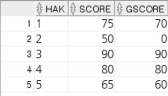 INSERT INTO score1 ( hak, score ) VALUES('5', 65);