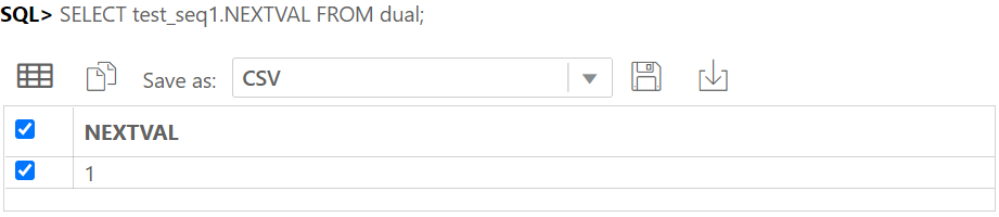 SELECT test_seq1.NEXTVAL, test_seq1.CURRVAL, test_seq1.NEXTVAL FROM dual;