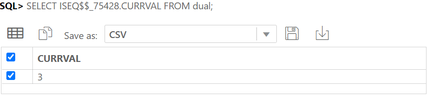 SELECT ISEQ$$_75428.CURRVAL FROM dual;