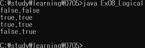 따라서 뒤에는 계산하지 않으므로 false, false가 출력된다.