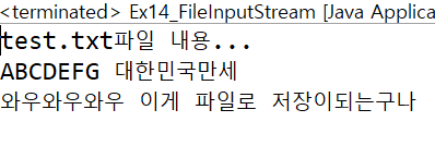 2021.08.24 - [쌍용강북교육센터/8월] - 0823_Java : FileOutStream 클래스 에서 저장한 파일을 읽어와 보았다.