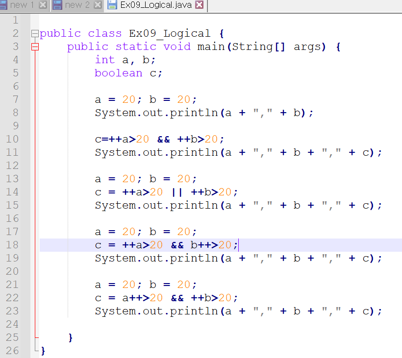 ++a는 a값에 +1하는 것이 먼저. 이므로 21>20 true. 뒤에도 21>20 true.