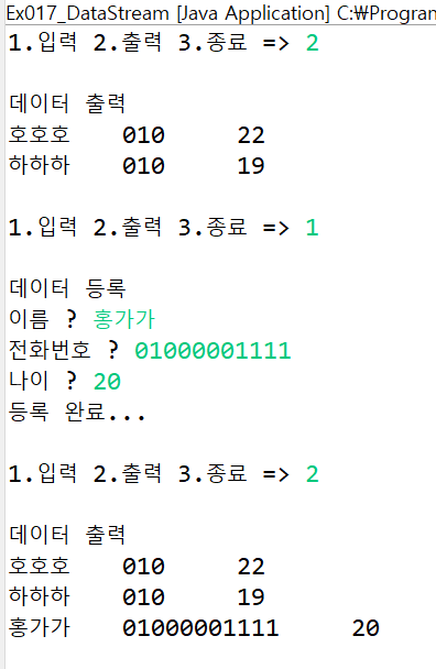 System.out.print("1.입력 2.출력 3.종료 => ");