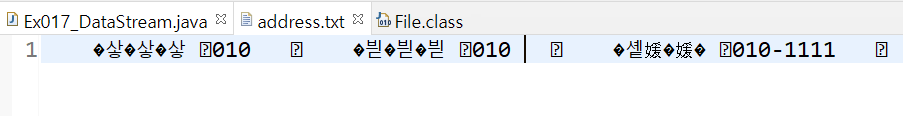 address.txt 안에 데이터가 저장된다. 인코딩이 UTF 로 되서 한글문자는 확인이 불가하다.