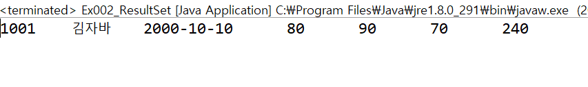 위 Statement 예시를 실행 후 ResultSet에서 불러온 결과