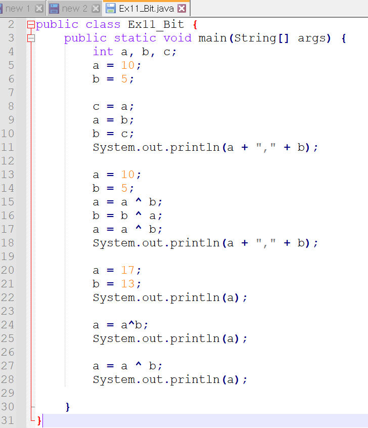 다른 새로운공간c를 사용하지 않고 바꾸는 방법,
