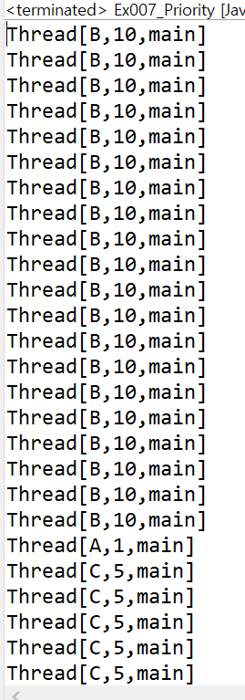 몇 번 실행시켜보면 우선순위가 높은 B부터 일처리를 하는 것을 알 수 있다.