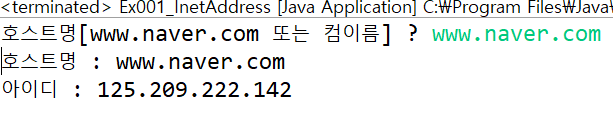 System.out.print("호스트명[www.naver.com 또는 컴이름] ? ");