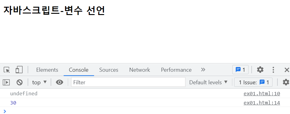 console.log(x); // undefined. 자바스크립트는 나중에 선언한 변수를 참조 할 수 있다.