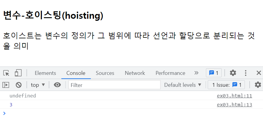 <h3>변수-호이스팅(hoisting)</h3>