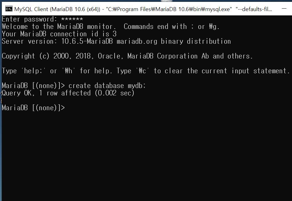 이후 윈도우 시작탭에서 MySQL Client (MariaDB) 라고 생기므로 누르고 들어가면된다.