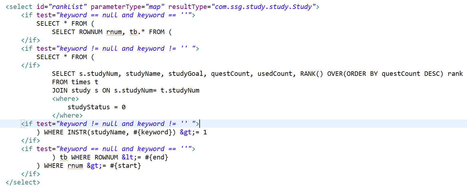 즉 keyword(검색값)이 있을 때는 제일 안쪽에 있는 서브쿼리(순위가 매겨져 있는 모든 자료)에서 검색한 이름에 부합하는 것들만 나오게!