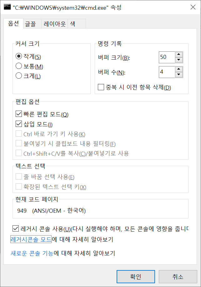 레거시 콘솔 사용 에 체크를 주고 실행했더니