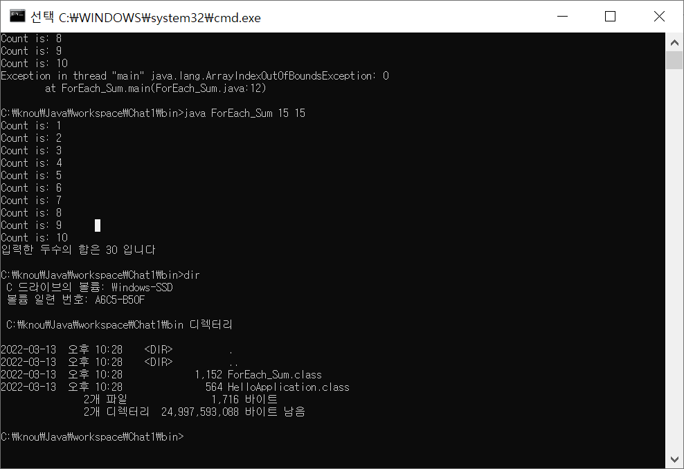 cmd 창에서도 자꾸 한글이 깨져서 자바 프로그램이 실행되서,