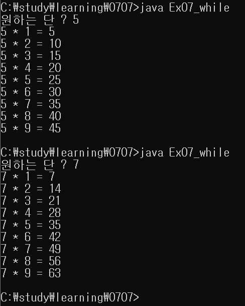 | 0707_Ex04_while : 1~10까지의 합 (0) | 2021.07.07 |