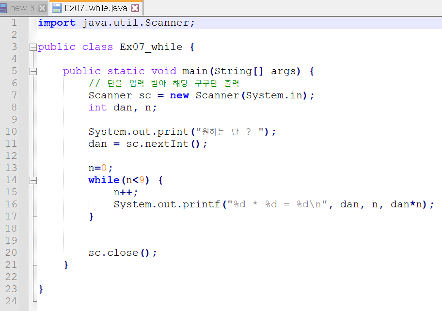 System.out.print("원하는 단?");