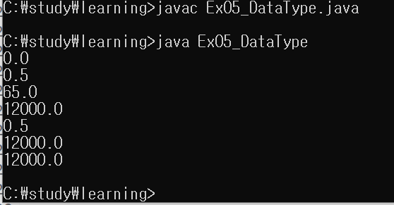 a = 0.5f; 는 f를 붙여서 리터널을 표시해준 것이다.