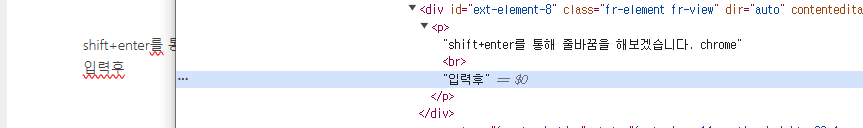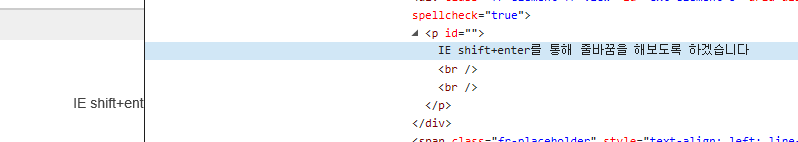 하지만 IE에서는 텍스트를 입력했어도 뒤에 <br /> 태그가 남아있었다.