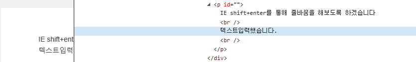 하지만 IE에서는 텍스트를 입력했어도 뒤에 <br /> 태그가 남아있었다.