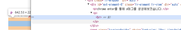 텍스트를 입력하면 (개발자도구에서 해당 element를 선택해놓고 텍스트입력을 해보면) <br>태그가 텍스트 입력했을 때 사라져있음을 볼 수 있다.