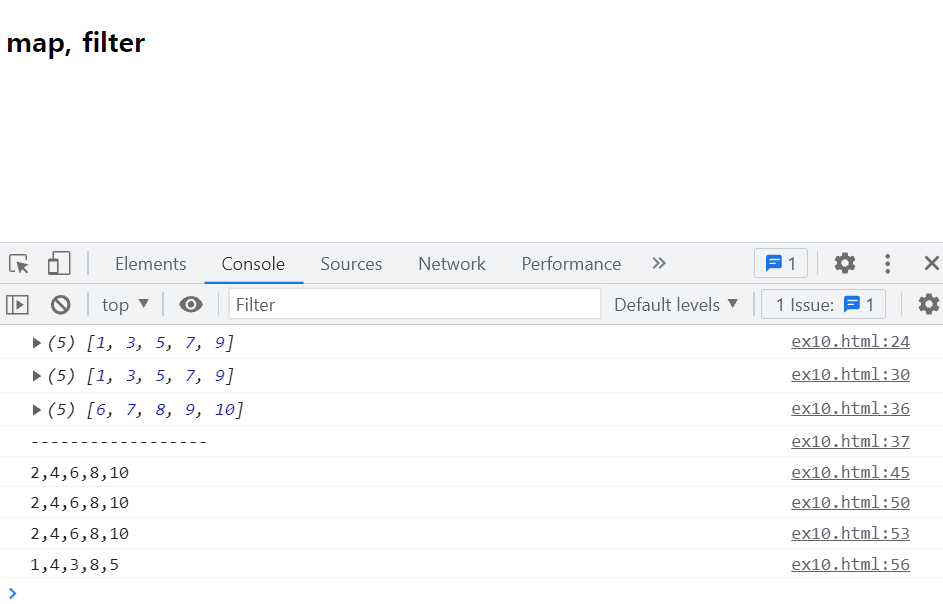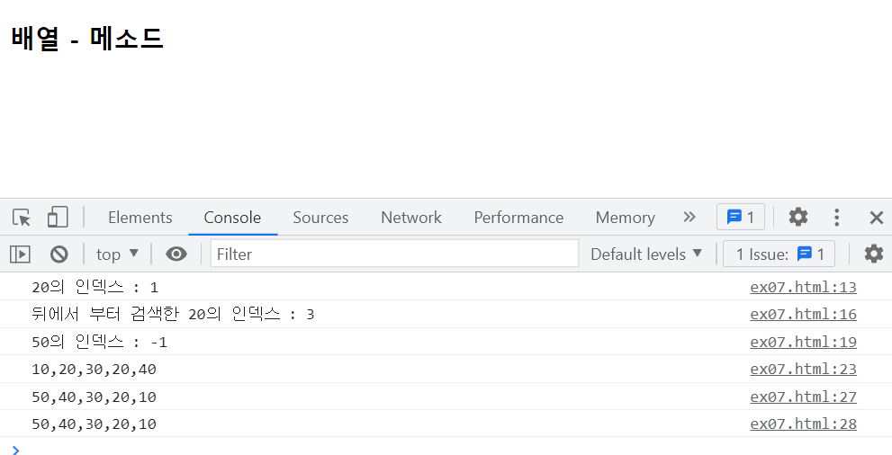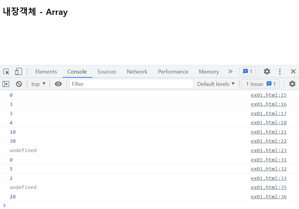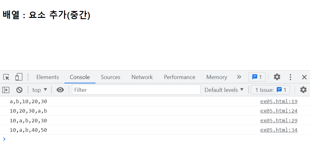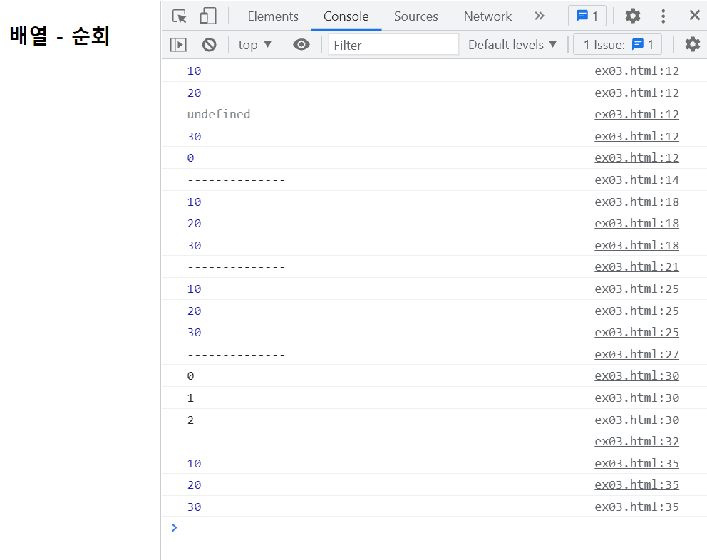 console.log( arr1 ); // [10,20,30,empty,50], 콘솔에서는 undefined는 empty로 표시