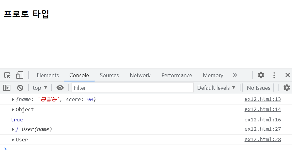 - 프로토 타입 객체를 참조하는 prototype 속성과 객체 멤버인 _proto_ 속성이 참조하는 숨은 링크가 있다.