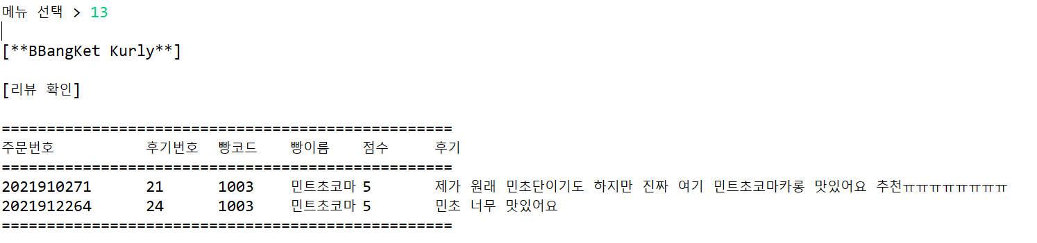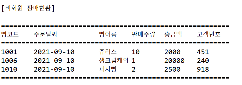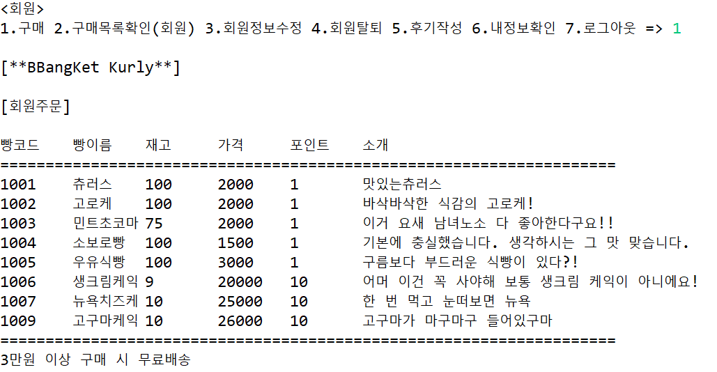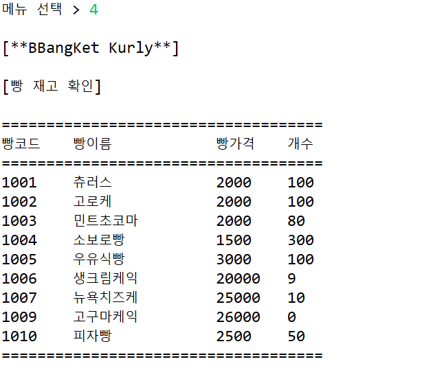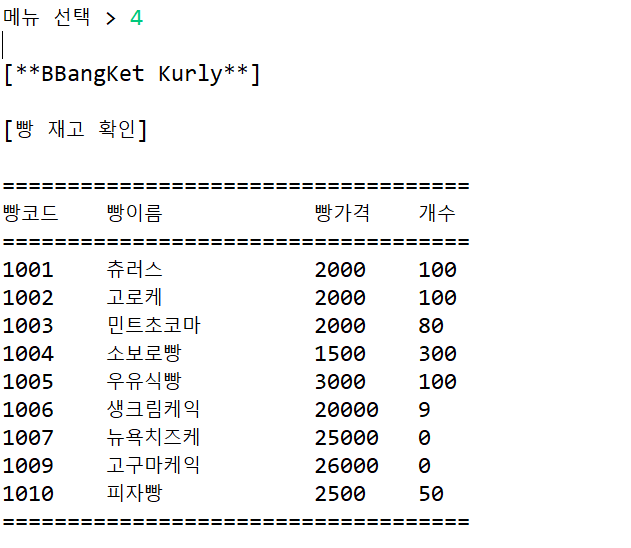 빵코드를 입력받아 재고는 빵코드로 합쳐서 보여지는데,