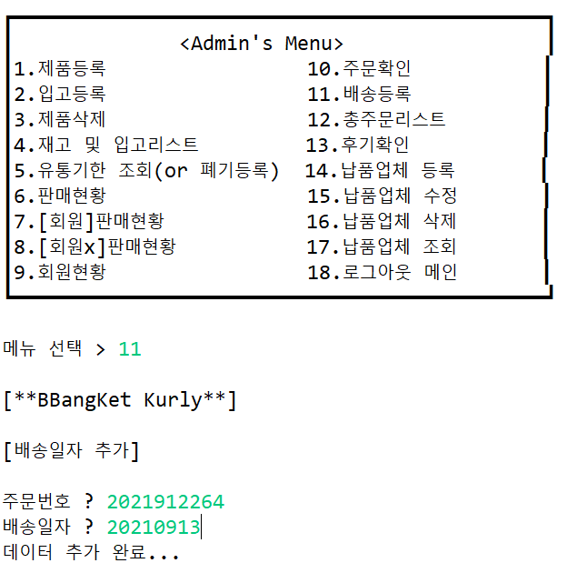 입고번호도 overloading을 통해서 입고에서 넣어줄 때는 오늘날짜+랜덤번호 를 통해 넣었다.
