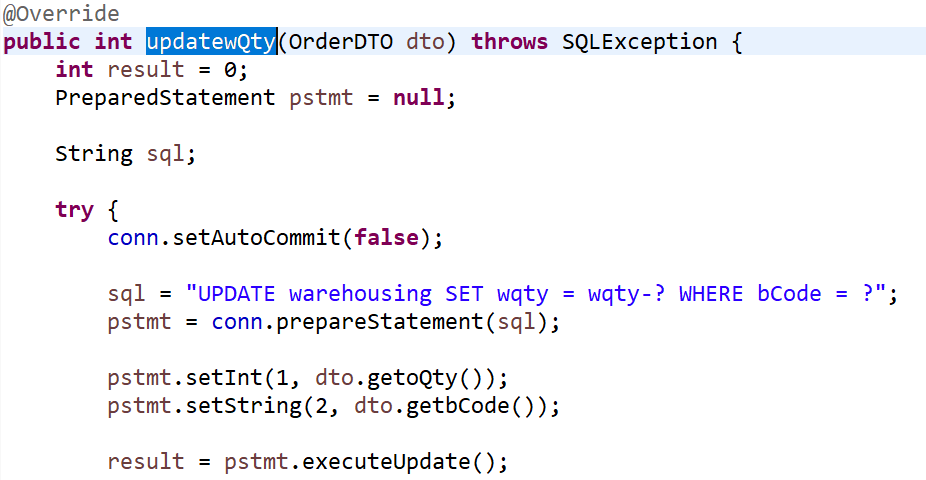 재고 업데이트를 빵코드를 받아서 하다보니까 빵코드에 해당하는 재고는 입고번호에 따라 계속 넣어지는데, (즉 빵코드에 해당하는 자료가 입고받을 때마다 넣어지므로 여러개) 재고를 2번을 입고 받았었기 때문에 해당 빵코드의 qty에서 -5가 다 들어가기 때문에 2번의 입고 정보에 다 -5가 되어서 -10이 되었던 것이다.