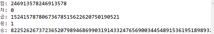 // BigInteger : 아주 큰 정수를 다루기 위해 제공하는 클래스
