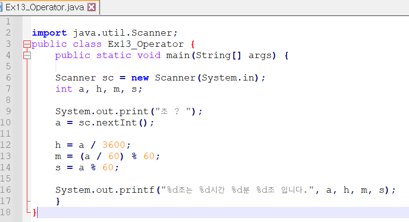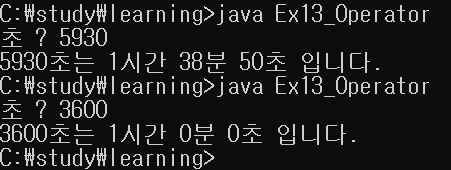 | 0702_Ex13_Operator : 초를 입력 받아 시, 분, 초 계산하기 (0) | 2021.07.04 |