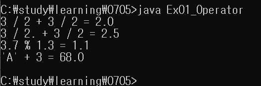 변수값에는 위에 3/2. 한 것처럼 .을 넣어 double형임을 나타낼 수 없다.